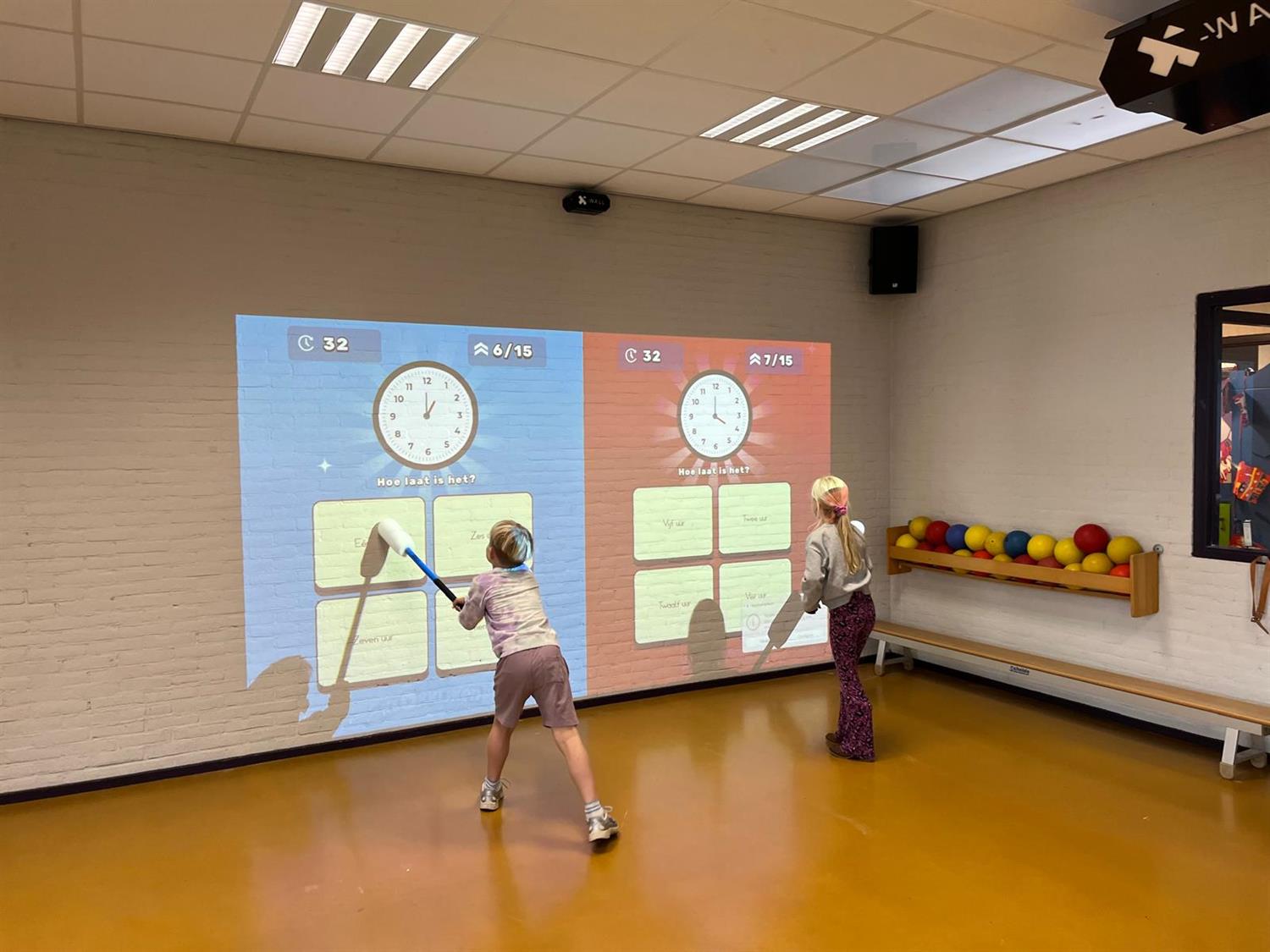 Waar nodig of gewenst vernieuwen we onze (digitale) middelen en zoeken we wat ons onderwijs kan versterken. Zo hebben de groepen 5 en 6 sinds kort nieuwe chromebooks en hangt sinds vorige week een X-wall in de speelzaal. Deze stimuleert het leren door beweging, om zo bijvoorbeeld gemakkelijker te automatiseren of kennis te verstevigen. Juf Valerie zal de komende tijd de X-wall steeds beter leren kennen en inzetten voor ons onderwijs. Uiteindelijk zal deze in alle groepen voor ontzettend veel doelen in worden gezet. Op de foto leerlingen uit groep 5, die gisteren de X-wall voor het eerst mochten uitproberen.